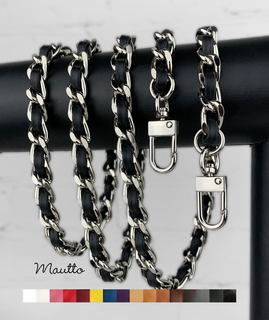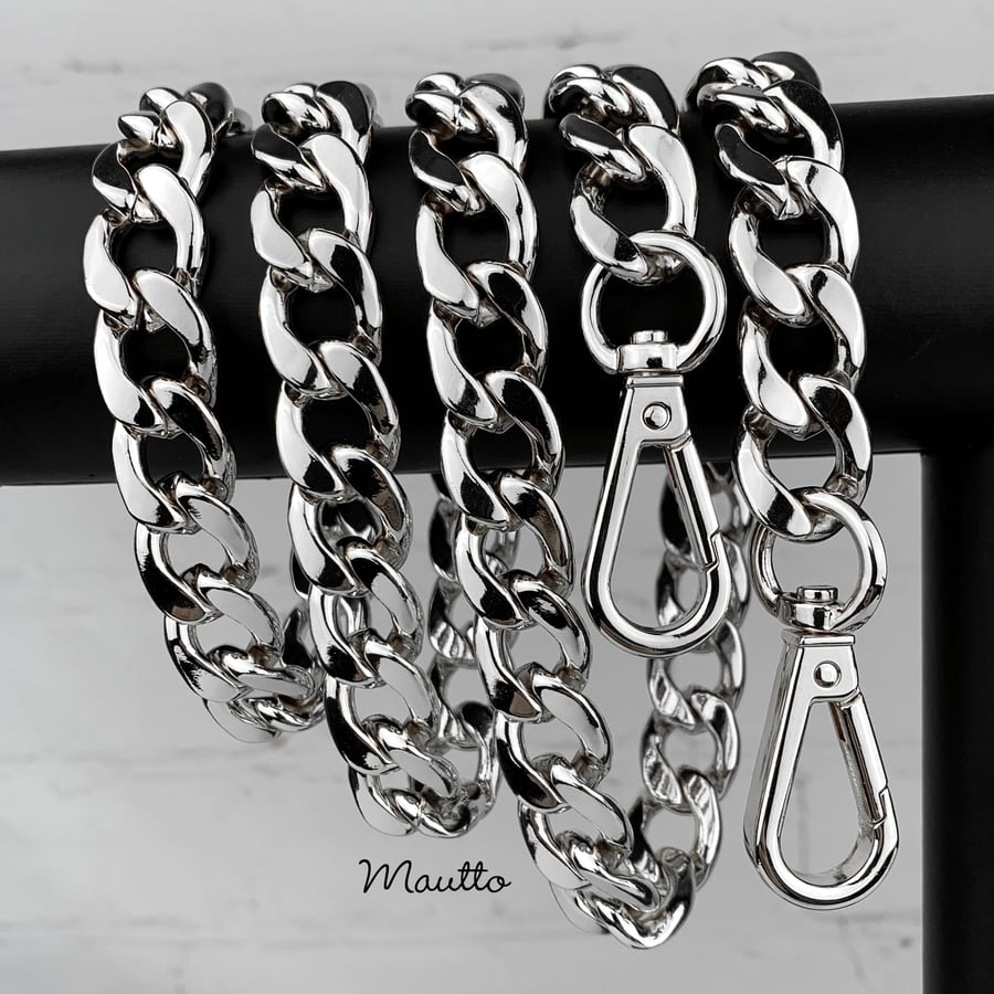 Mautto nickel chain straps have the look, feel and weight of fine silver-tone jewelry. Most are offered in top handle to crossbody lengths, with your choice of clasp style. These are NOT your typical aluminum or plastic chain straps, often sold by other bargain retailers.