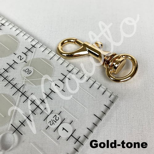 - Polished silver-tone or gold-tone metal clip with swiveling base