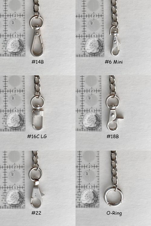 Available from 24" to 60" (inches) in length, end-to-end, including all hardware. Each length is increased by 2" to give you a wide range to choose from. Easily attach the chain strap to your bag using your choice of attachable NICKEL swiveling hooks or inward-opening O-Rings.