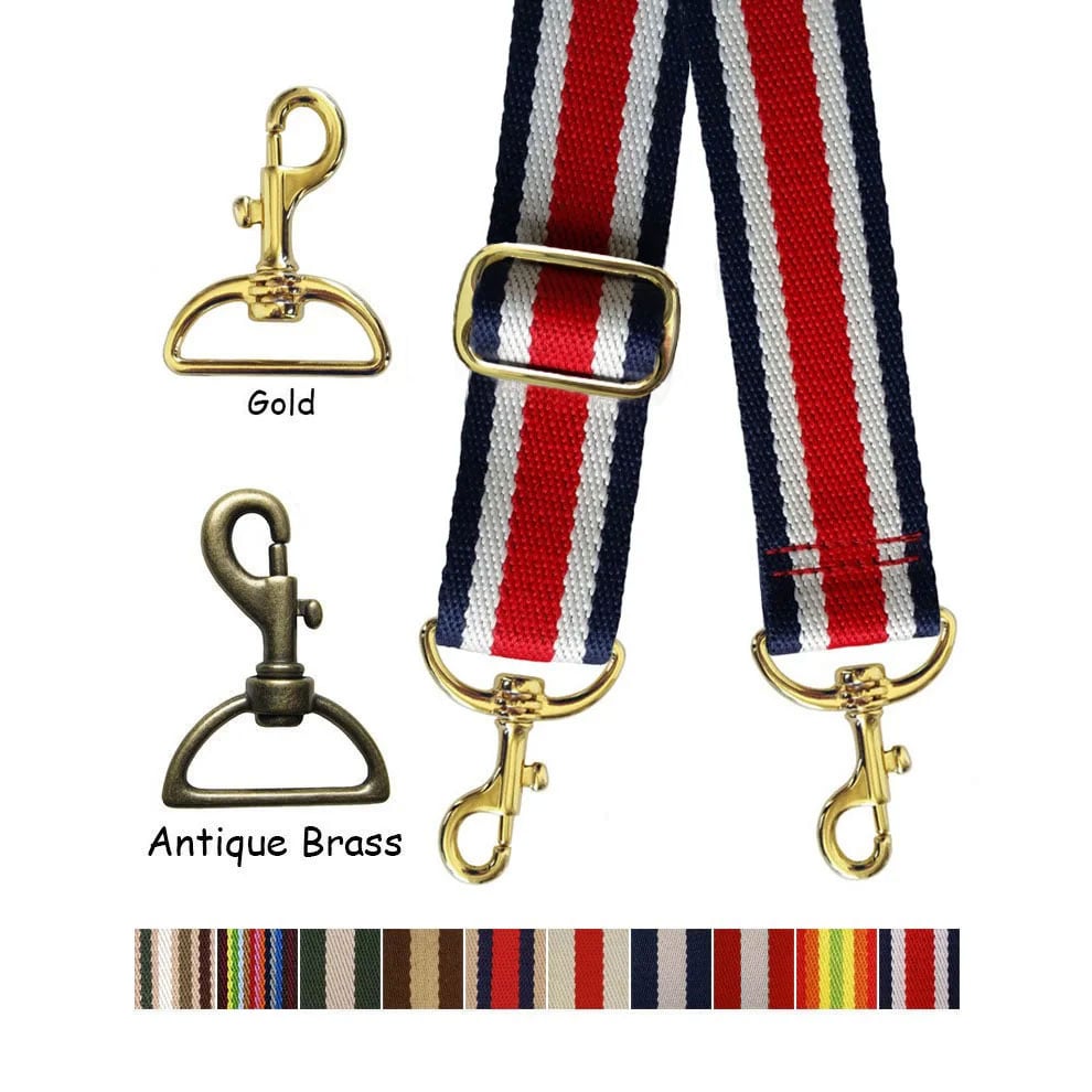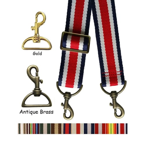 Striped Color Canvas Webbing Strap - Adjustable - 1.5" Wide - Choose Style, Length & Gold Finish #19